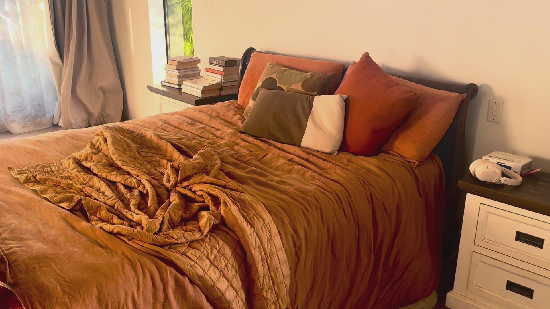 6.8 kg weighted blanket + guided breathing for when you're too wired to rest. Low-tox • sensory-friendly.